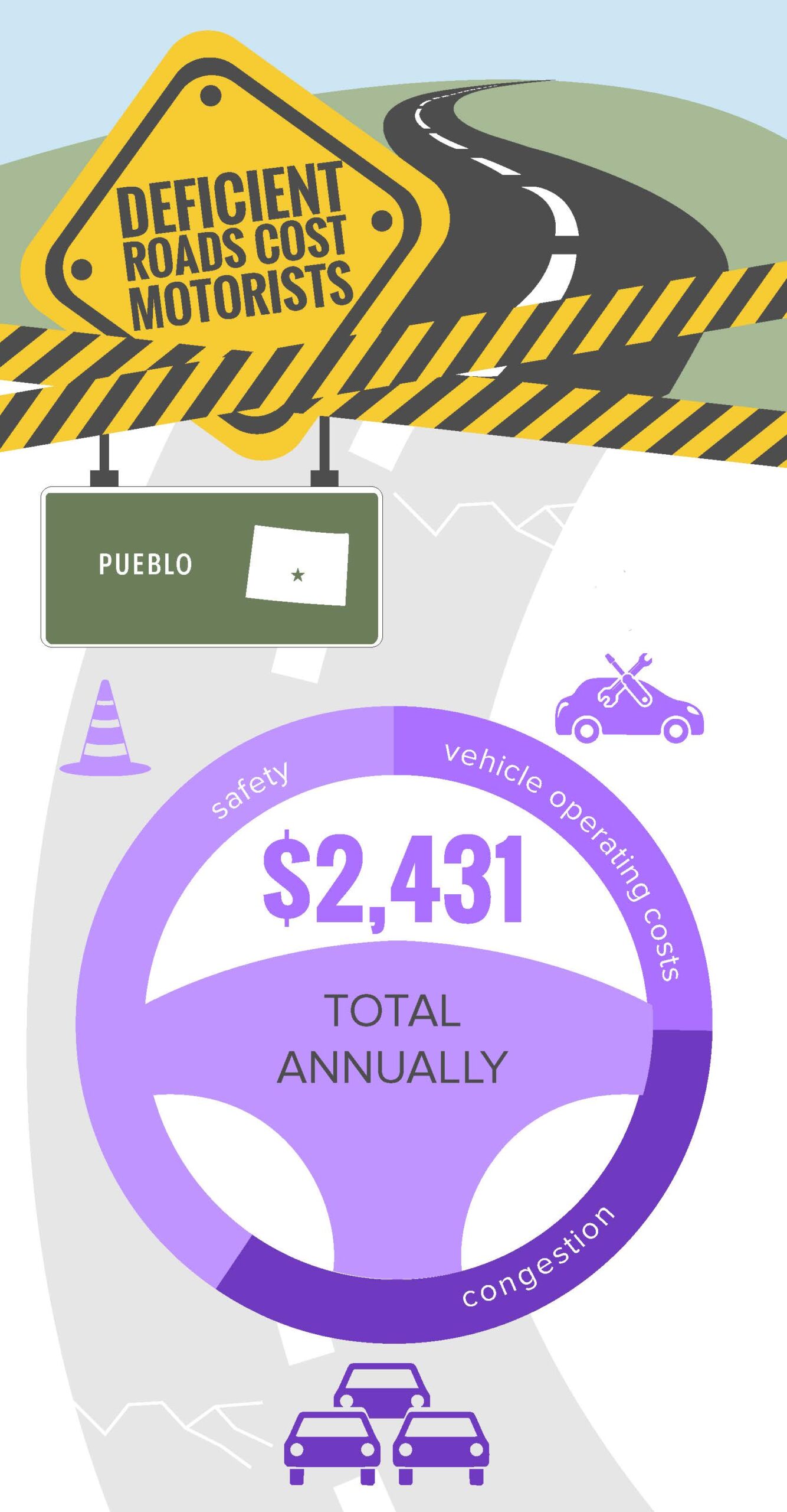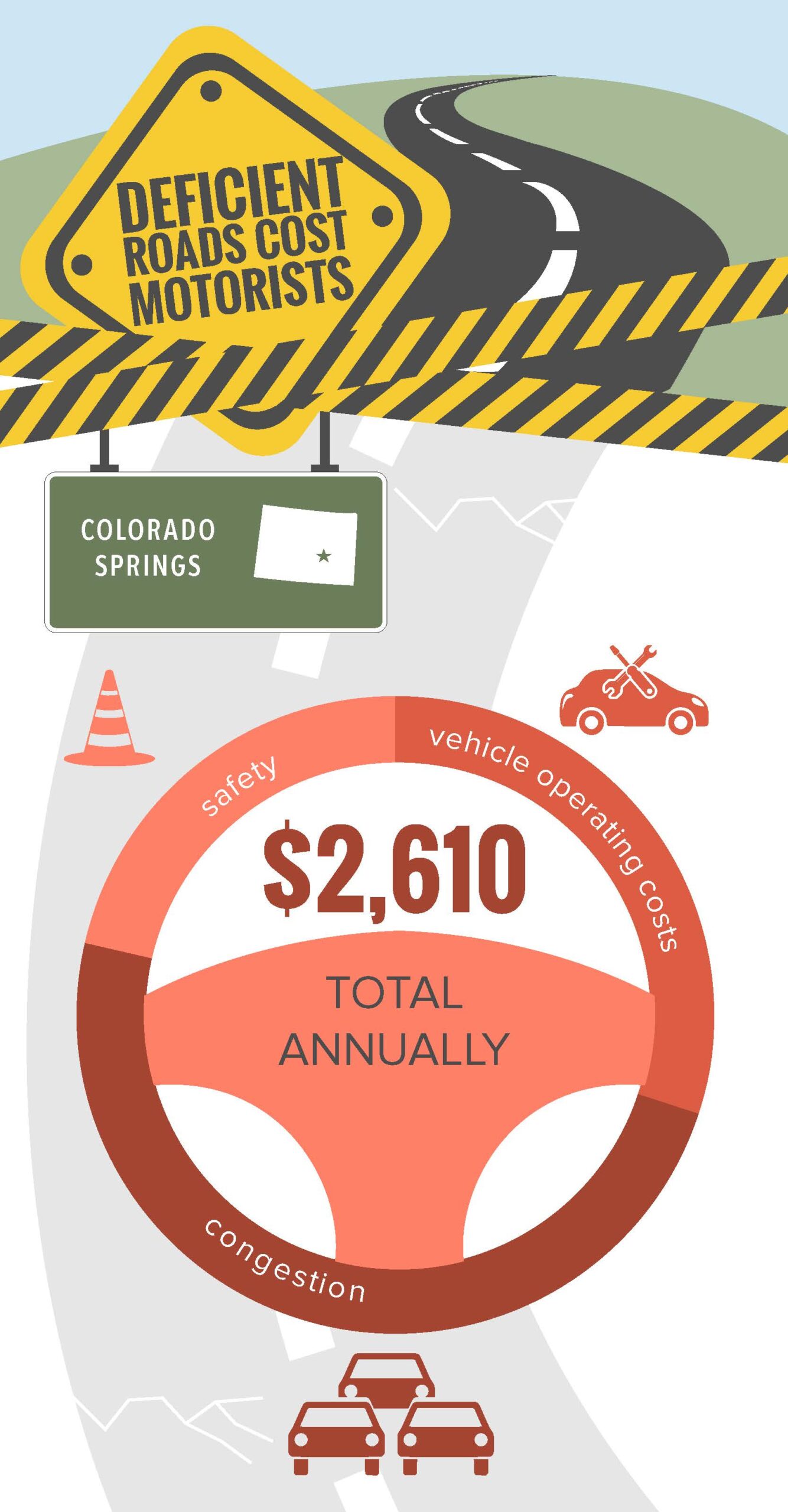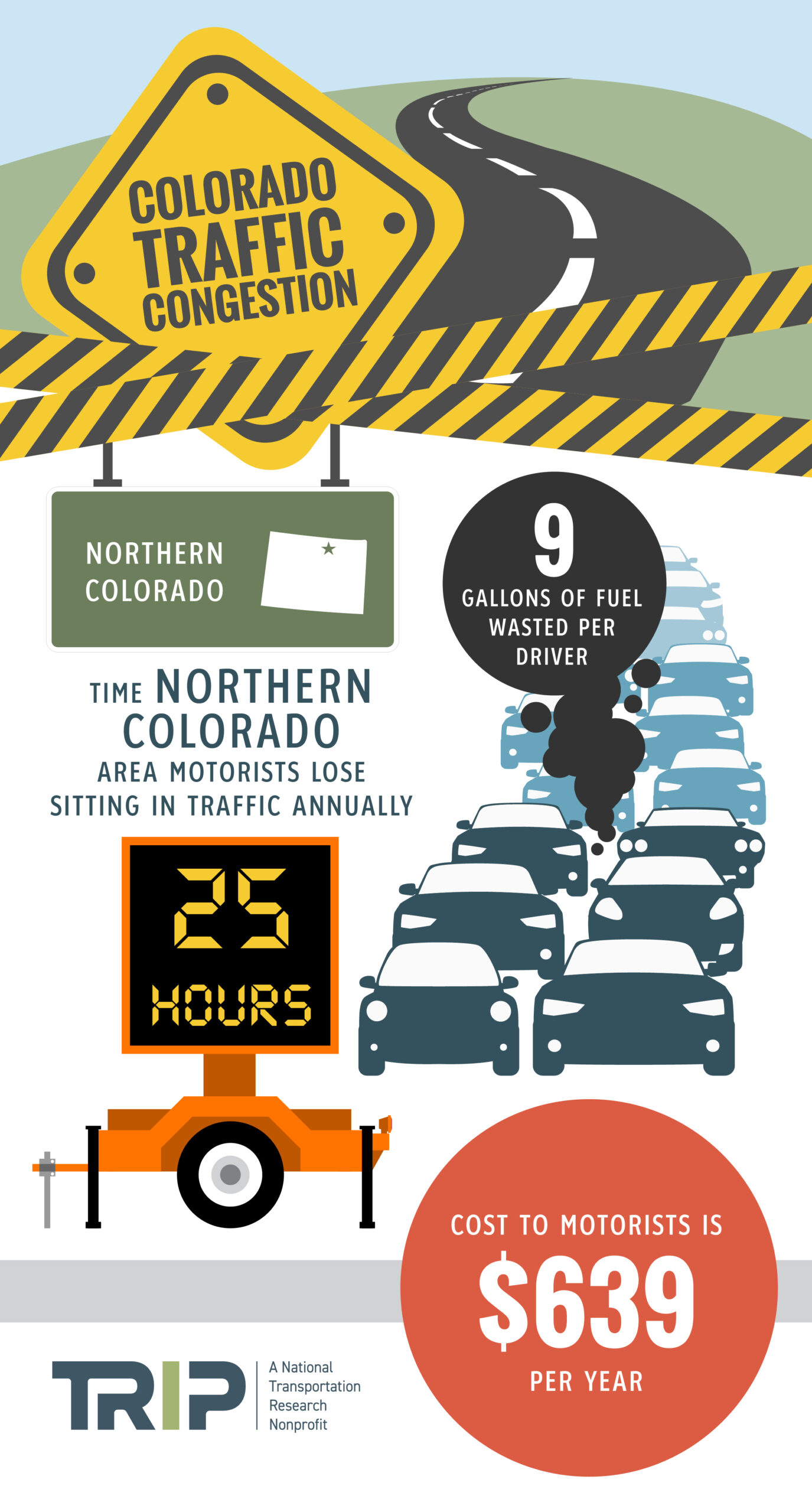 This report examines the condition, use and safety of Colorado’s roads, highways and bridges, and the state’s future mobility needs. Sources of information for this report include AAA, the AAA Foundation for Traffic Safety, the American Association of State Highway and Transportation Officials (AASHTO), the American Road & Transportation Builders Association (ARTBA), the Bureau of Transportation Statistics (BTS), the Federal Highway Administration (FHWA), the National Highway Traffic Safety Administration (NHTSA), the Texas Transportation Institute (TTI), The Transportation Research Board (TRB), the U.S. Census Bureau, and the U.S. Department of Transportation.