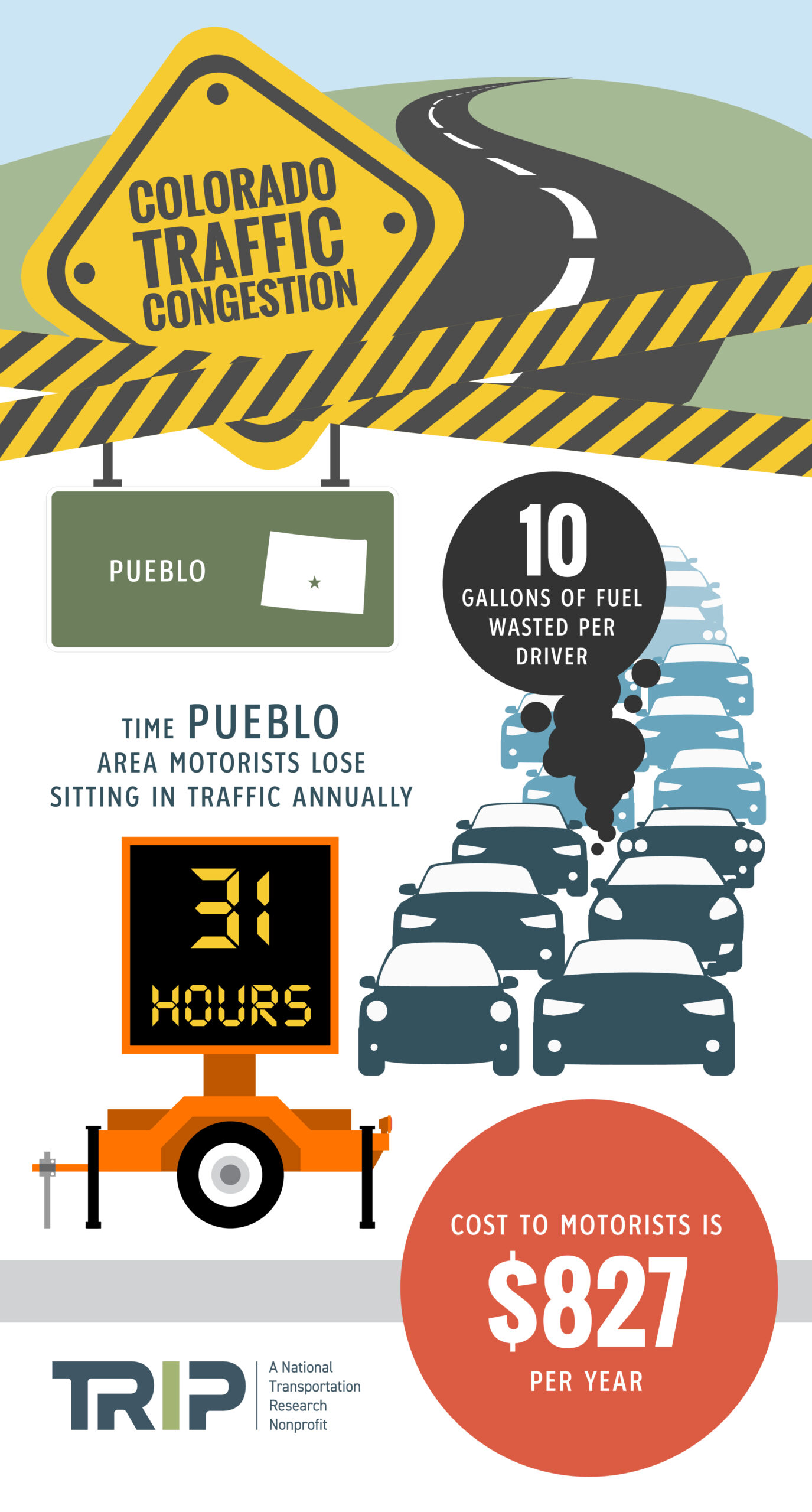 In addition to statewide data, the TRIP report includes regional data for the following areas: Colorado Springs, Denver, Grand Junction, Northern Colorado and Pueblo. An urban area is defined as a region’s municipalities and surrounding suburbs for pavement condition and congestion data; bridge and traffic fatality data include a region’s major counties.