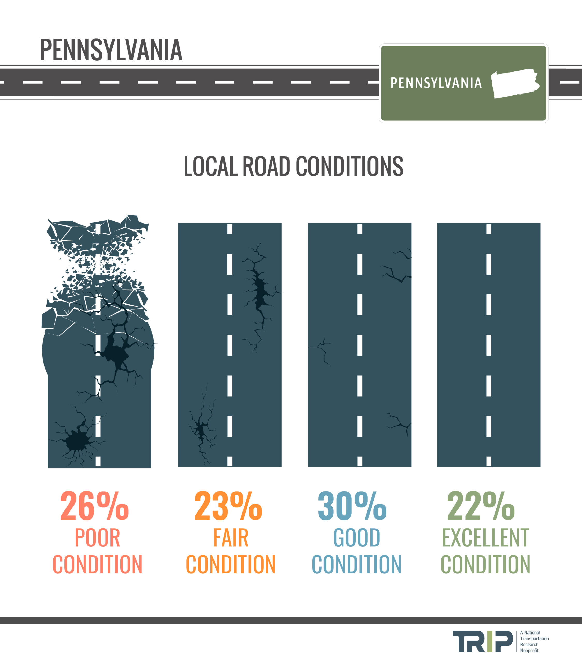 This report provides condition data for Pennsylvania’s local roads and bridges, which are defined as those that are not part of the state’s National Highway System (NHS). The NHS includes Interstate highways and other major highways in the state designated as the state’s most vital economic routes. The local pavement condition data in this report are for roadways maintained by PennDOT and the bridge condition and traffic fatality totals and rate includes state and locally-maintained roads and bridges.